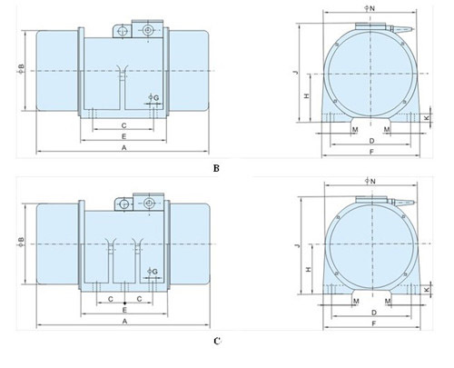 XVM振動(dòng)篩電機(jī)外形及安裝尺寸 :